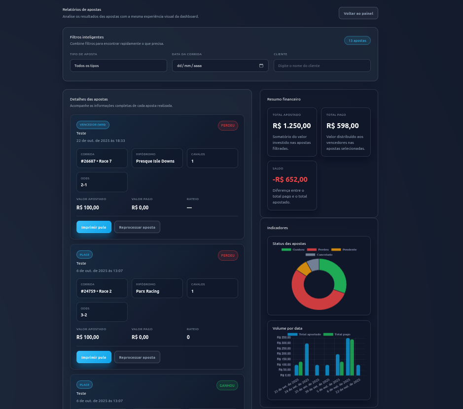 Com ele, é possível registrar corridas, processar apostas em tempo real, calcular automaticamente os prêmios e publicar resultados com rapidez e confiabilidade.
